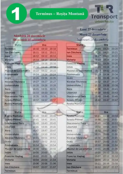 Transport Urban Reșița (TUR) anunță lansarea Tramvaiului Moșului, un proiect special aflat la prima ediție, dedicat copiilor și atmosferei de sărbătoare din municipiul Reșița.